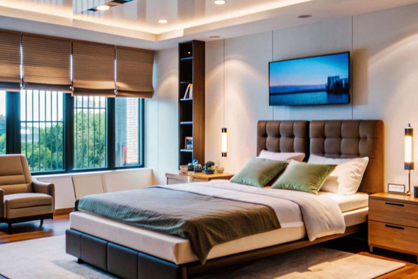 The rooms feature an elegant décor and large windows. They are equipped with coffee/tea maker, minibar, cable/satellite TV and Wi-Fi.